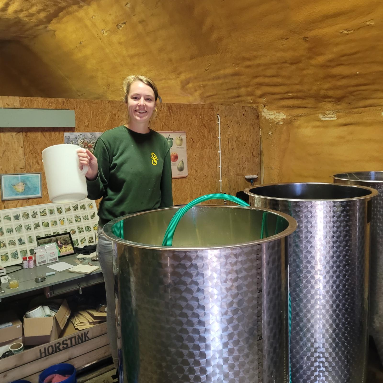 Covid-19 gooide fllink roet in het eten, want de uitgezochte Cider course in Engeland ging almaar niet door. Zelf experimenten in de kelder bracht ook niet het resultaat dat ze in gedachten had. Gelukkig bood IESSELcider uit Deventer een helpende hand. Bij hun mocht ze in de cidermakerij meehelpen, van oogsten en het persen van het ciderfruit, meekijken bij de productie van hun cider om zo te leren wat er zoal bij komt kijken.